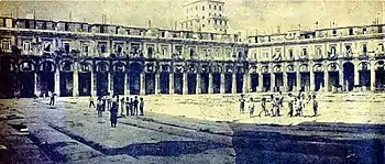 In the early morning of September 7, 1872 a fire destroyed the previous mercado de Tacón and it was necessary to install a provisional market in the Campo de Marte. The Public Works Advisory Board met on April 29, 1874 and the decision was made to replace the old market in the same place with the name Plaza de Tacón. The fruit stalls, the little shops, the clothing stores, the fur shops and a thousand other establishments that adorned the street gave each side of the building its particular character.[7] With some exceptions, the shopkeepers invented new ways to attract customers, otherwise nothing remarkable happened in the Plaza de Vapor during the working hours; as the night fell, one found the animation of the city, the electric lights, the silence on the interior courtyard and the darkness.[8]