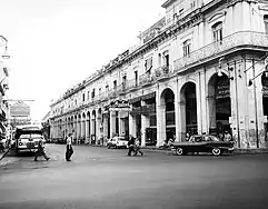 The district has two paifang,[24][lower-alpha 2] the larger one located on Calle Dragones. The long-neglected Chinatown in Havana, Cuba, received materials for its paifang from the People's Republic of China as part of the Chinatown's gradual renaissance.[25] China donated the materials in the late 1990s.[26] It has a well defined written welcoming sign in Chinese and Spanish. The smaller arch is located on Zanja strip. Cuba's Chinese boom ended when Fidel Castro's 1959 revolution seized private businesses, sending tens of thousands of business-minded Chinese fleeing, mainly to the United States. Descendants are now making efforts to preserve and revive the culture.[10] Many of the businesses in the Plaza del Vapor were operated and owned by Chinese Cubans.