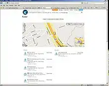Plazes has a radar function that allows users to discover other Plazes users that are located near the user's current location. The Plazes Radar generates a list of the locations close to the user's current location and lists the number of Plazes users that have previously stated they were at that location. When the user clicks on the location name, information about the user that was at that location is displayed along with a description of the user's activity at the location.
