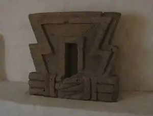 In addition to its political function, it was probably dedicated to the earth, by the inverted T shape related to the underworld. Its walls contain carved stones with a cut spiral.[1]