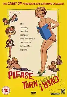 Please Turn Over is a 1959 British comedy film written by Norman Hudis, produced by Peter Rogers and directed by Gerald Thomas.[1] It featured Ted Ray, Julia Lockwood, Jean Kent, Joan Sims, Leslie Phillips, Charles Hawtrey, Lionel Jeffries and Victor Maddern.[2] The screenplay concerns an English town that is thrown into chaos when the daughter of one of the residents publishes a book detailing the supposed secrets of the inhabitants.[3] It was based on the play Book of the Month by Basil Thomas.[4]