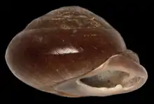 | Apertural view of the shell of Pleurodonte dentiens. The height of the shell is 11.7 mm. | |