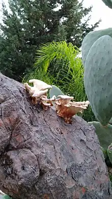Pleurotus opuntiae is a species of Agaricales fungus that grows in the semi-arid climate of central Mexico[1] and in New Zealand,[2] whose mushroom is edible and considered a delicacy in the cuisine of indigenous peoples of Mexico. It is known as hongo de maguey común in Mexican Spanish, seta de chumbera/nopal in Peninsular Spanish, and kjoo'wada in Otomi language.[3] Phylogenetic research has shown that while it belongs to P. djamor-cornucopiae clade, it forms its own intersterility group,[4] but it has also been claimed to be genetically inter-incompatible with P. australis, P. ostreatus (extra-limital), P. pulmonarius and P. purpureo-olivaceus of New Zealand.[2]