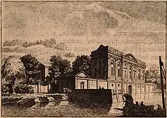 In 1751 John Boyle, 5th Earl of Orrery, a close friend of Alexander Pope, published an English translation of Pliny's letters. The letter to Voconius Romanus describing the Comedy and Tragedy villas was illustrated with an imagined depiction of the Comedy villa by Samuel Wale. According to the architectural historian Pierre de la Ruffinière du Prey, the villa in Wale's drawing bears a noticeable resemblance to Pope's villa on the River Thames.[3] Pliny's own description of the Comedy villa mentioned that its terrace was gently curved like the bay on which it stood. He could fish directly from his bedroom window and likened lying in his bed to lying in a fishing boat on the lake.[1]