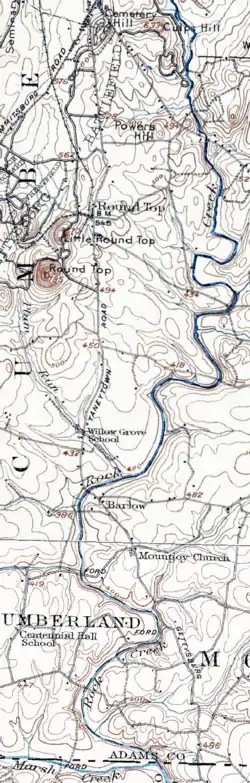 Plum Run (Rock Run in 1821)[1] is a Pennsylvania stream flowing southward from the Gettysburg Battlefield between the Gettys-Black Divide on the east and on the west, the drainage divide for Pitzer Run, Biesecker Run, Willoughby Run, and Marsh Creek.