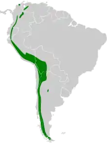 It is found in Argentina, Bolivia, Chile, Colombia, Ecuador, Peru, and Venezuela. Its natural habitats are subtropical or tropical high-altitude grassland and pastureland.