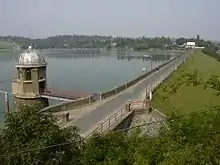 The Hloučela River flows through the town. Plumlov Dam was built on this river in 1936 and is one of the oldest in the Morava River basin.[2] The second notable body of water next to the town is Podhradský Pond.