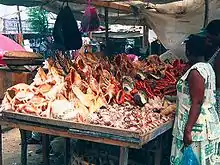 In rural areas in Africa, the key motives for poaching are the lack of employment opportunities and a limited potential for agriculture and livestock production. Poor people rely on natural resources for their survival and generate cash income through the sale of bushmeat, which attracts high prices in urban centres. Body parts of wildlife are also in demand for traditional medicine and ceremonies.[10] The existence of an international market for poached wildlife implies that well-organised gangs of professional poachers enter vulnerable areas to hunt, and crime syndicates organise the trafficking of wildlife body parts through a complex interlinking network to markets outside the respective countries of origin.[29][30] Armed conflict in Africa has been linked to intensified poaching and wildlife declines within protected areas,[31] likely reflecting the disruption of traditional livelihoods, which causes people to seek alternative food sources.