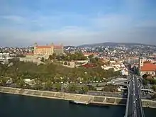Podhradie (Latin: Suburbium; German: Schlossgrund; Hungarian: Pozsony-Várallya) is a historical part of Bratislava, the capital of Slovakia, situated around the Bratislava Castle hill. Today, it consists of the areas of Zuckermandel, Vydrica and the area above Židovská Street. Until the 13th century, Podhradie consisted of various settlements situated around the castle, outside of the Bratislava city walls with all land on the castle hill belonging to the castle. Zuckermandel and Vydrica were incorporated in 1848 as the 4. district of the city of Bratislava and from 1850 until its partial demolition in the half of 20th century it was called Mesto Márie Terézie (German: Theresienstadt; Hungarian: Terézváros).[1]