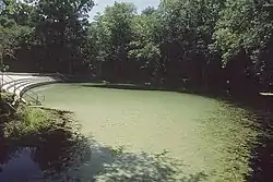 Poe Springs is a spring about 3 miles west of High Springs, Florida.[1] It is located in Poe Springs Park, which is 202 acres in size.[2] The spring is isolated from the main part of the park at its center, requiring a 0.3 mile hike one-way.[1][2] The water temperature is 72 degrees Fahrenheit.[1] It is managed by Alachua County Parks and Recreation and is $5.00 per car to visit.[1] Poe Springs Park is the only county-run park that allows swimming.[1] In addition to swimming, snorkeling is also popular.[2] However, scuba diving is not allowed.[1] The spring produces an average volume of 45 million gallons of water daily that feed into the Santa Fe River.[1] The spring vent is 25 feet deep.[3]
