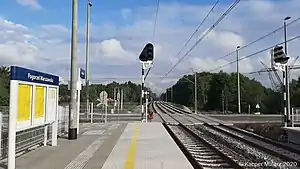 Pogorzel Warszawska railway station is a railway station at Pogorzel, Otwock, Masovian, Poland. It is served by Koleje Mazowieckie.