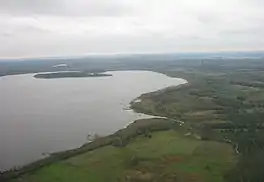 The lake is polymictic with a round shape and a depth which does not have substantial difference. The lake's area is 670,8 ha, the length is 3,9 km, has a width of 2,5 km, and the depth to 2.6 metres. In the Northern part of the lake is located the island Ostrów Wielki with an area of 21 ha.[2] The lake is mainly surrounded by forests (about 95%, the rest 5% are fields and pastures). The shore of the lake is a swamp, and is not easily accessible. The surface of the lake is covered with vegetation from the water. The main inflow of the lake is the river Rybnica, which carries water from the lake Brzozolasek. The outflow of the lake is also by the river Rybnica in the South which flows the water to the nearby lake Pogubie Małe. From the Western side of the lake the river Zimna flows in.[3]