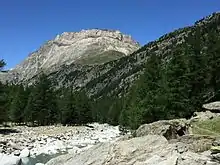 The mountain, although lying on the Alpine watershed between the Val di Susa and the Maurienne, is entirely in French territory following the boundary adjustments decided in the 1947 Treaty of Paris. The area was interested by the Vallo Alpino and ligne Maginot fortifications and then during the II World War saw the fights facing the chasseurs alpins (French Army) and the German mountain troops.[3]