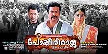 Pokkiri Raja (transl. Rogue King) is a 2010 Indian Malayalam-language action comedy film written by the duo Udaykrishna–Sibi K. Thomas, directed by debutante Vysakh and starring Mammootty and Prithviraj Sukumaran with the supporting cast including Shriya Saran, Siddique, Nedumudi Venu, Vijayaraghavan, Salim Kumar, Suraj Venjaramoodu and Riyaz Khan. The score was composed by C. Rajamani with songs composed by Jassie Gift. The film received positive response from the critics and audience and was a box office success. The film marked the debut of Shriya Saran in Malayalam cinema.[1][2][3]