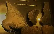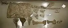 A second partial skeleton, from which parts had been removed since 1876, was identified and fully excavated by Dr. William T. Blows in 1979;[20] it is also in the London Natural History Museum as specimen NHMUK R9293. It is the first specimen to show skull elements, neck vertebrae and unequivocal anterior armour.[4] More contentious are finds from mainland England. In 2014 a partial skeleton was reported from Bexhill in Sussex, specimen BEXHM 1999.34.1-2011.23.1 discovered in the early summer of 1998 by David Brockhurst in the Ashdown Pevensey Quarry. This dates from the Valanginian.[21] In 1999, 2007 and 2011, remains from Spain were referred to Polacanthus.[22][23][24]