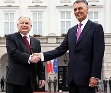 Both nations work closely together as mutual members of the European Union. There have also been several high-level visits between leaders of both nations. Polish President Lech Kaczyński visited Portugal in 2007, and Portuguese President Aníbal Cavaco Silva paid a visit to Poland in 2008.