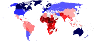 World map of countries by the inequality-adjusted Human Development Index.
