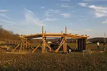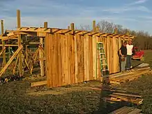 Pole building design was pioneered in the 1930s in the United States originally using utility poles for horse barns and agricultural buildings. The depressed value of agricultural products in the 1920s and 1930s and the emergence of large, corporate farming in the 1930s created a demand for larger, cheaper agricultural buildings.[2] As the practice took hold, rather than using utility poles, materials such as pole barn nails were developed specifically for this type of construction, making the process more affordable and reliable. Today, almost any low-rise structure can be quickly built using the post-frame construction method.[3]