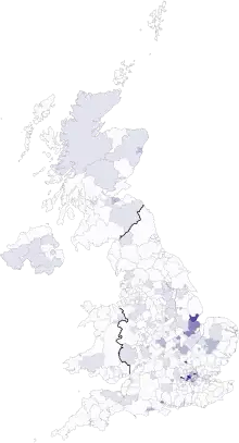British Poles, alternatively known as Polish British people or Polish Britons, are ethnic Poles who are citizens of the United Kingdom. The term includes people born in the UK who are of Polish descent and Polish-born people who reside in the UK. There are approximately 700,000 people born in Poland resident in the UK. Since the late 20th century, they have become one of the largest ethnic minorities in the country alongside Irish, Indians, Pakistanis, Bangladeshis, Germans, and Chinese. The Polish language is the second-most spoken language in England and the third-most spoken in the UK after English and Welsh. About 1% of the UK population speaks Polish.[1][2] The Polish population in the UK has increased more than tenfold since 2001.[3]