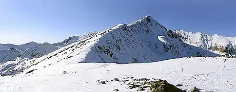 ![]() Polezhan peak as viewed from the saddle next to Bezbog peak. | |