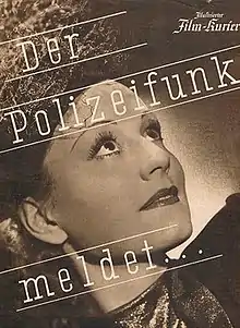 Police Report (German: Der Polizeifunk meldet) is a 1939 German crime thriller film directed by Rudolf van der Noss and starring Lola Müthel, Hans Zesch-Ballot and Erich Fiedler.[1] It was shot at the Babelsberg Studios in Berlin.[2] The film's sets were designed by the art directors Heinrich Beisenherz and Alfred Bütow. It was produced and distributed by Terra Film.