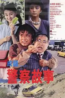 Police Story (Chinese: 警察故事; pinyin: Jǐngchá Gùshì; Jyutping: Ging2 caat3 gu3 si6) is a 1985 Hong Kong action thriller film directed by and starring Jackie Chan, who co-wrote the screenplay with Edward Tang.[1][2][3] It is the first film in the Police Story franchise. It features Chan as Hong Kong police detective "Kevin" Chan Ka-Kui, alongside Brigitte Lin and Maggie Cheung. In the film, Ka-Kui helps arrest a drug lord, but must clear his own name after being accused of murder.
