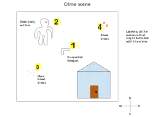 A crime scene is any location that may be associated with a committed crime.[1] Crime scenes contain physical evidence that is pertinent to a criminal investigation. This evidence is collected by crime scene investigators (CSI) and law enforcement. The location of a crime scene can be the place where the crime took place or can be any area that contains evidence from the crime itself. Scenes are not only limited to a location, but can be any person, place, or object associated with the criminal behaviours that occurred.