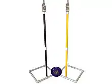 Polish horseshoes (also called Spanish horseshoes, frisbeener in the midwest,[1] French darts in Virginia,[2] and beersbee in Canada[3]) is an outdoor game played between two teams of two people using a frisbee, two glass bottles or cans, and stakes, ski poles or hiking sticks hammered into the ground. The game is played by the players taking turns throwing a frisbee at a glass bottle that rests on top of the stakes in the ground. The two stakes are placed anywhere between 20 and 40 ft (6.1 and 12.2 m) apart. Players must hold a drink in one hand at all times, leaving only one hand free for throwing and catching.