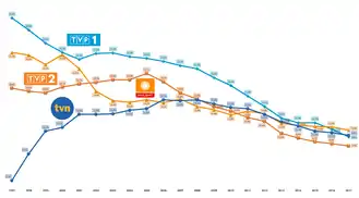 | Polsat | 12/1992 | 7.30 | 8.19 | 8.37 | 9.85 | 10.23 | 10.91 | 11.45 | 11.60 | 11.84 | 12.24 | 13.97 | 14.53 | |