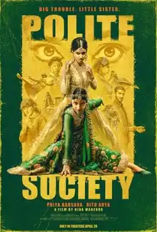 Polite Society is a 2023 British action comedy-drama film written and directed by Nida Manzoor (in her feature film directorial debut). The film stars Priya Kansara, Ritu Arya, Nimra Bucha, Akshay Khanna, Seraphina Beh, Ella Bruccoleri, Shona Babayemi, Shobu Kapoor, and Jeff Mirza.