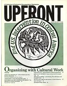 As part of its mission, PAD/D published UPFRONT, a magazine on arts and activism, and Red Letter Days, "a calendar of leftist and activist events", and the collective organized exhibitions on the topics of gentrification, the US military budget, and political propaganda.[4] The PAD/D collective also oversaw several issues of Cultural Correspondence, a publication inspired by the New Left, near the end of that magazine's existence.[5] In 1982, PAD/D also collaborated with Cultural Correspondence to publish an audiovisual art slideshow entitled "We want to live! Artworks for peace, June 12, 1982".[6]