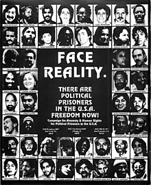 "Political prisoner" is an inherently vague term which is most commonly applied to people persecuted for their political beliefs or for their "threat" to the government.[1] Imprisonment for mere expression of political beliefs is rare in the United States, because free speech and free expression are well-established in law.[2] However, several human rights groups, such as Amnesty International, have pointed to repeated examples of US federal and state governments targeting people affiliated with dissident movements for "neutralization" by applying much harsher sentences for real or "framed" crimes, such as during COINTELPRO.