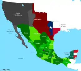 Map of Mexico in 1845, with the Republic of Texas, the Republic of Yucatan and the disputed territory between Mexico and Texas in red. Mexico claimed to own all of Texas.