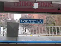 Polk is an 'L' station on the Pink Line of the Chicago Transit Authority. It is adjacent to Rush University Medical Center within the Illinois Medical District in the Near West Side community area.