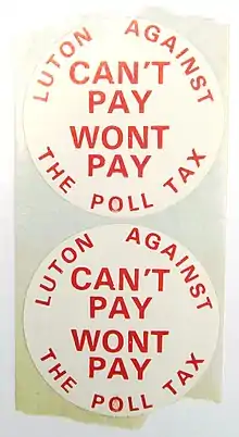 4. Wilde, Robert, "Community Charge / Poll Tax", About Education, archived from the original on 6 September 2015, retrieved 10 October 2015