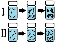Chemical oxidative polymerization is a traditional and commonly used method for the polymerization of aniline in large quantities.[2] When aniline is mixed with an oxidant in an acidic solution, polymerization will occur. The most important parameter to be controlled in this method for the synthesis of polyaniline nanofibers is the domination of homogeneous nucleation over heterogeneous nucleation. Homogeneous nucleation describes when the nuclei are formed spontaneously in solution while heterogeneous nucleation describes when the nuclei are grown on other species. In the early stages of this polymerization, only nanofibers are formed since there are no heteronuclei available for heterogeneous nucleation. However, if the reaction is left uncontrolled, heterogeneous nucleation will begin to dominate as the polyaniline will preferentially grow on existing particles, leading to irreversible agglomeration. The reaction can be made to favor homogeneous nucleation throughout by increasing reaction speed, temperature of the reaction, and allowing the reaction to proceed without stirring.[2]