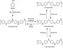 Methods for the polymerization of polyaniline nanofibers seen in literature primarily include [redox|chemical oxidative] polymerization, interfacial synthesis, and "rapid mixing" methods.[3][4][5][6] Other less common methods include nanofiber seeding, electrosynthesis, electrospinning, and preforming polymerization in dilute aniline solutions.[7]