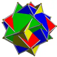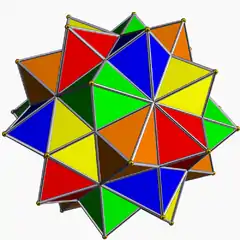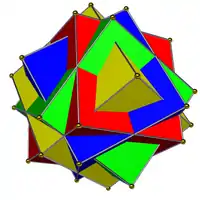 In geometry, a polyhedral compound is a figure that is composed of several polyhedra sharing a common centre. They are the three-dimensional analogs of polygonal compounds such as the hexagram.