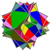 In 4-dimensions, there are a large number of regular compounds of regular polytopes. Coxeter lists a few of these in his book Regular Polytopes.[4] McMullen added six in his paper New Regular Compounds of 4-Polytopes.[5]