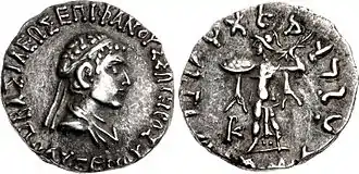 Polyxenus, whose portraits depict a diademed young man, struck silver coins which closely resemble those of Strato I. Both kings used the epithets Soter Epiphanes and the reverse of Athena Alcidemus (fighting Pallas Athene), the emblem of the dynasty of Menander I. Polyxenus also struck bronzes with Athena on the obverse and her aegis on the reverse. He issued no Attic silver.