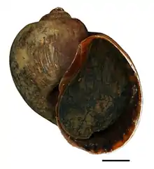 | Apertural view of a shell of Pomacea maculata | |