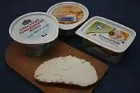 Pomazánkové máslo (literally: "spread butter") is a traditional Czech and Slovak dairy product. It is a spread made from sour cream, milk powder and buttermilk powder. It also contains starch, salt and usually herb or similar flavoring. The Czech food regulator (Státní potravinářská inspekce) requires the pomazánkové máslo must consist of at least 31% milk fat and 42% milk solids. Milk fat cannot be replaced by vegetable fat.