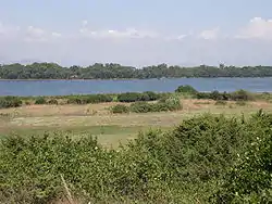 The Pontine Marshes (/ˈpɒntaɪn/ PON-tyne, US also /ˈpɒntiːn/ PON-teen; Italian: Agro Pontino [ˈaːɡro ponˈtiːno], formerly also Paludi Pontine; Latin: Pomptinus Ager [sg.] by Titus Livius,[1] Pomptina Palus [sg.] and Pomptinae Paludes [pl.] by Pliny the Elder[2][3]) is an approximately quadrangular area of former marshland in the Lazio Region of central Italy, extending along the coast southeast of Rome about 45 km (28 mi) from just east of Anzio to Terracina (ancient Tarracina), varying in distance inland between the Tyrrhenian Sea and the Volscian Mountains (the Monti Lepini in the north, the Monti Ausoni in the center, and the Monti Aurunci in the south) from 15 to 25 km (9+1⁄2 to 15+1⁄2 mi).[4] The northwestern border runs approximately from the mouth of the river Astura along the river and from its upper reaches to Cori in the Monti Lepini.
