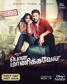 Pon Manickavel is a 2021 Indian Tamil-language action thriller film directed by A. C. Mugil Chellappan of Kandaen fame. The film stars Prabhu Deva and Nivetha Pethuraj in lead roles.[1] Music is scored by D. Imman. It is the 50th film of Prabhu Deva.[2] The film was released on 19 November 2021.[3] The film also marks the final film appearance of actor and director Mahendran, before his death on 2 April 2019. The film received mixed reviews from critics.[4]