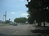As the road makes its way through the city of Ponce, it is also known as the Ponce Bypass.[8] The Ponce Bypass intersects with seven major roads: PR-2R (Carretera Pámpanos), with access to the Estadio Francisco Montaner; PR-585 (Avenida Eduardo Ruberté), which leads to barrio Playa; PR-123 (Avenida Hostos), leading to the Museo de Arte de Ponce and historic downtown Ponce; PR-12 (Avenida Santiago de los Caballeros), leading to La Guancha Boardwalk and the Port of the Americas; and PR-163 (Avenida Julio Enrique Monagas) leading to Julio Enrique Monagas Family Park and Museo de Arte de Ponce. The road's last intersection in Ponce as well as its western terminus is at its intersection with PR-133 westbound (Calle Comercio, a.k.a. Avenida Ednita Nazario) and PR-1 eastbound (Avenida La Ceiba). PR-133 heads west to Ceiba Tree Park and PR-1 heads east to Mercedita Airport. After this dual intersection at PR-133/PR-1 the road seamlessly becomes a 4-lane thoroughfare called Miguel A. Pou Boulevard, the city's main artery into the Ponce Historic Zone.