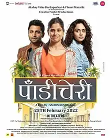 Pondicherry is a 2022 Indian Marathi-language relationship drama[1] film directed by Sachin Kundalkar[2] and produced by Creative Vibe Productions shot entirely on smartphone.[3][4][5] The film stars Sai Tamhankar, Vaibhav Tatwawadi and Amruta Khanvilkar are in lead roles.[6] Pondicherry was scheduled to be theatrically release on 25 February 2022.[7][8] Planet Marathi OTT is the official streaming partner of this film.[9]
