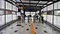 The fare gates of the station Pondok Ranji on the new pedestrian bridge. To the left is the exit access to the Pertamina housing complex.