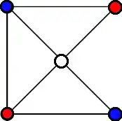 The board consists of 5 vertices and 7 edges. Each player has two pieces. Players take turns to move. At each turn, the player moves one of their two pieces into the adjacent vacant vertex. If a player can't move, they lose.