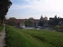 The Ponte Vecchio (Old Bridge) also known as the Ponte Clemente, is the oldest bridge in Cesena and a symbol of the city. The bridge spans the River Savio at one of its narrowest points. Construction work began around 1733 on the order of Pope Clement XII.