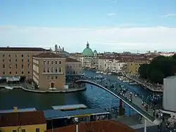 The bridge is situated at a strategic point, connecting the railway station (Stazione Santa Lucia), on the north with the Piazzale Roma (the City's arrival point by car/bus), on the south side of the Grand Canal. The bridge is important both functionally and symbolically, connecting arriving visitors to the city and welcoming them to Venice with a panoramic view of the Grand Canal.[1]